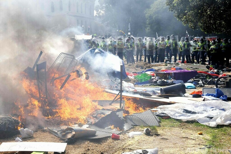 NZ、反コロナ規制の座り込み強制排除 テント燃やし抵抗