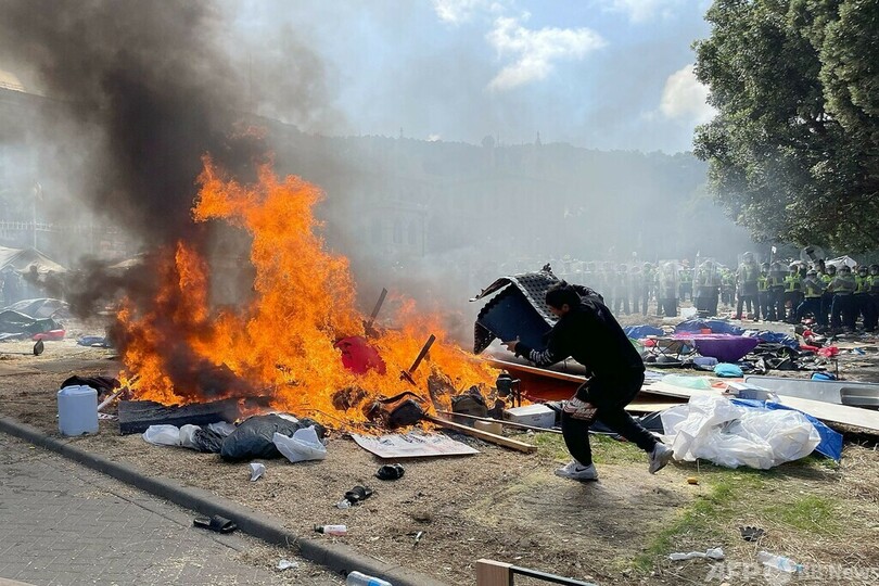 NZ、反コロナ規制の座り込み強制排除 テント燃やし抵抗