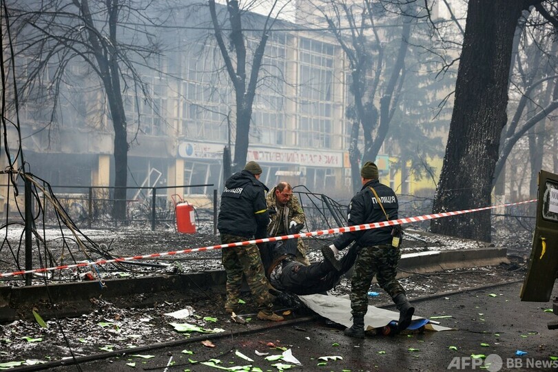 ウクライナ・キエフのテレビ塔への空爆で亡くなった人(2022年3月2日撮影、資料写真)。(c)Dimitar DILKOFF / AFP)
