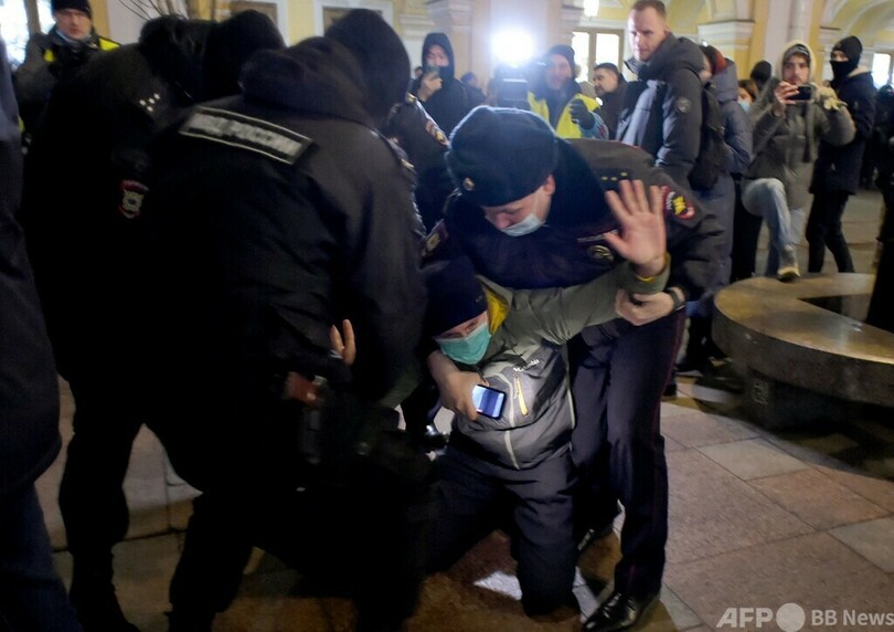 ロシアでは多数がウクライナ侵攻に抗議する街頭デモに参加しており、独立監視団体「OVDインフォ(OVD-Info)」によるとこれまでに7000人以上が逮捕されている。