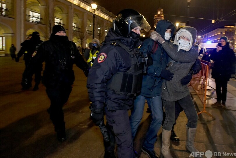ロシアでは多数がウクライナ侵攻に抗議する街頭デモに参加しており、独立監視団体「OVDインフォ(OVD-Info)」によるとこれまでに7000人以上が逮捕されている。