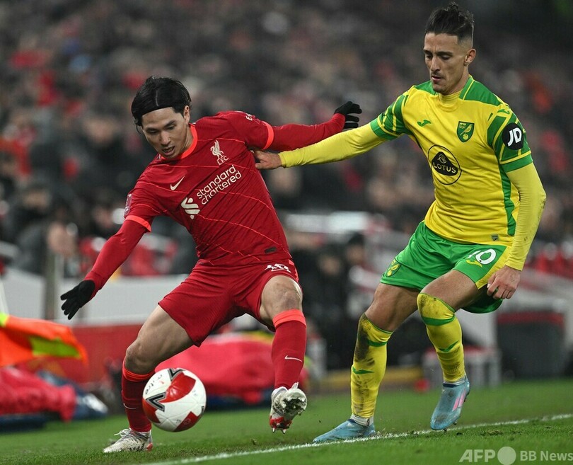【3月3日 AFP】サッカーイングランドFAカップ(FA Cup 2021-22)は2日、5回戦が各地で行われ、リバプール(Liverpool FC)は南野拓実(Takumi Minamino)の2得点でノリッジ・シティ(Norwich City)を2-1で下し8強入り。前人未到となる4冠の望みをつないだ。