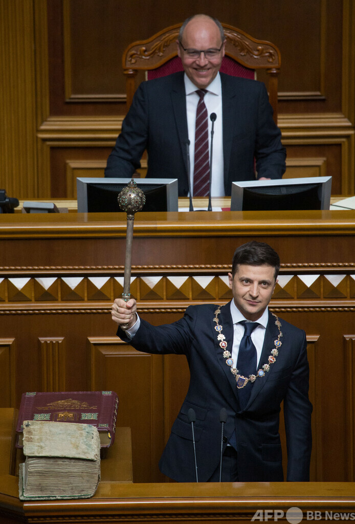 2019年の大統領選出馬は、冗談と受け止められていた。だが、ゼレンスキー氏は決選投票で70%以上の票を獲得し、現職のペトロ・ポロシェンコ(Petro Poroshenko)大統領(当時)を破った。