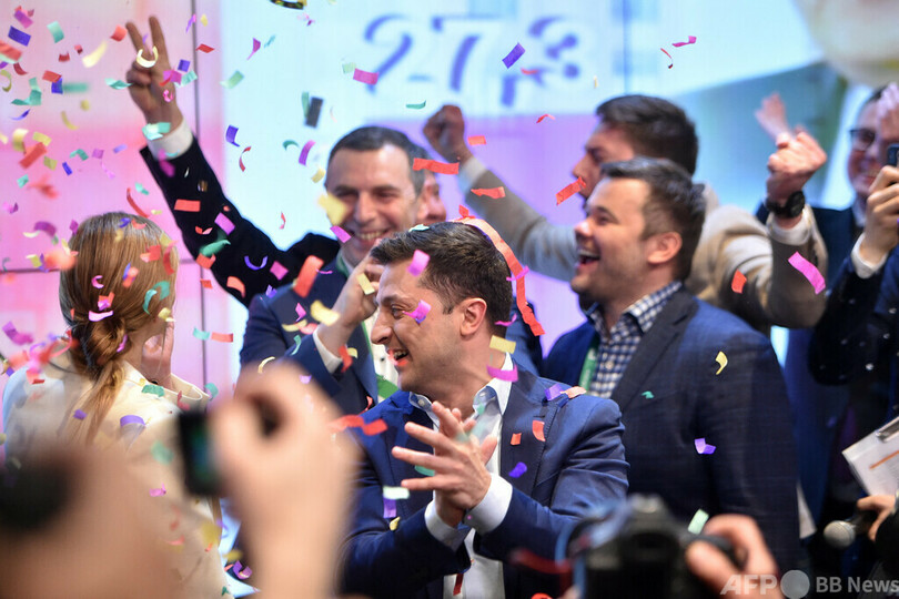 2019年の大統領選出馬は、冗談と受け止められていた。だが、ゼレンスキー氏は決選投票で70%以上の票を獲得し、現職のペトロ・ポロシェンコ(Petro Poroshenko)大統領(当時)を破った。