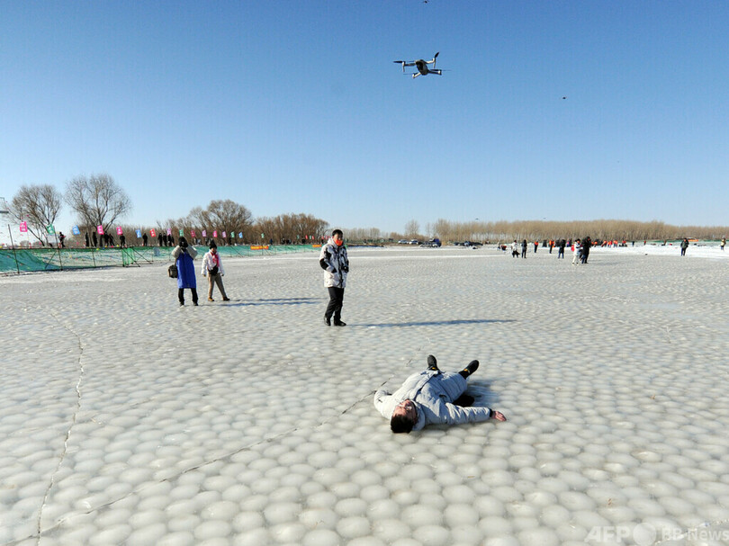 自然が生み出した「氷の団子」 中国・吉林の四海湖