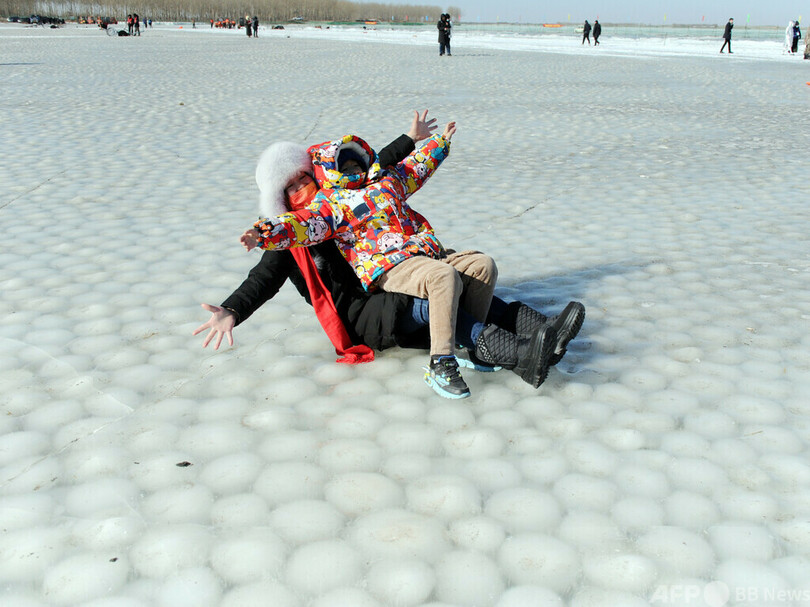 自然が生み出した「氷の団子」 中国・吉林の四海湖