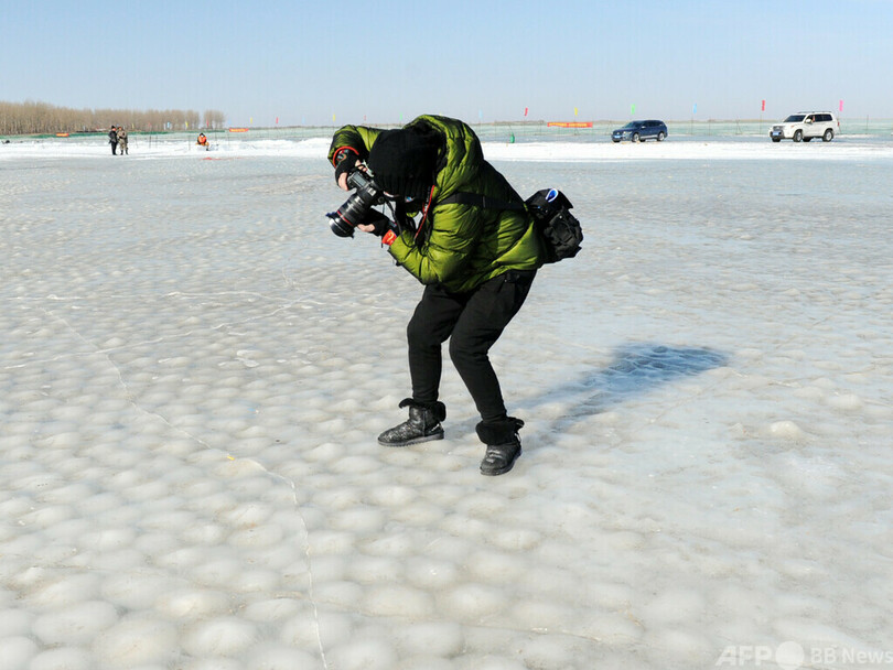 観光客は凍った湖の上を楽しみ、写真愛好家は熱心に奇観を撮影。インターネットの有名インフルエンサーも訪れ、現地からリポートしていた。(c)CNS/JCM/AFPBB News