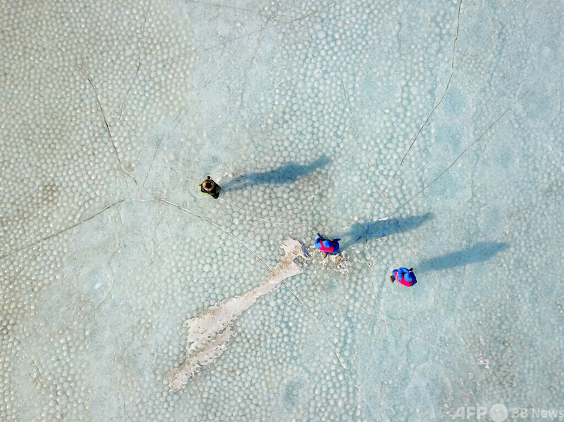 観光客は凍った湖の上を楽しみ、写真愛好家は熱心に奇観を撮影。インターネットの有名インフルエンサーも訪れ、現地からリポートしていた。(c)CNS/JCM/AFPBB News