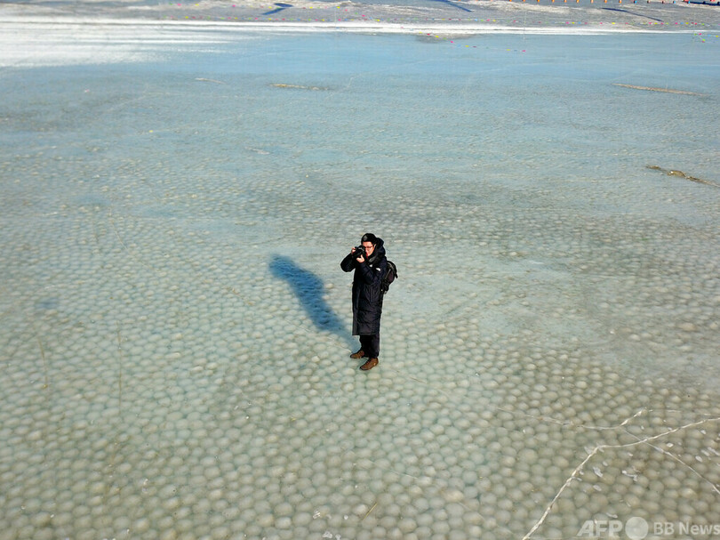 観光客は凍った湖の上を楽しみ、写真愛好家は熱心に奇観を撮影。インターネットの有名インフルエンサーも訪れ、現地からリポートしていた。(c)CNS/JCM/AFPBB News