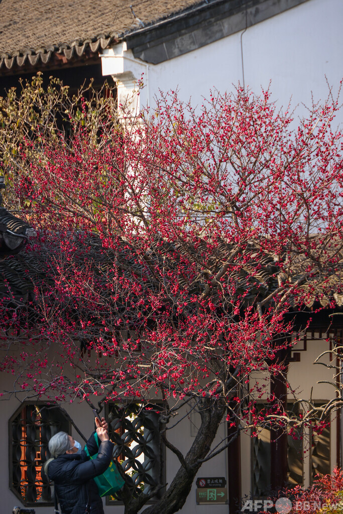 市民の憩いの場となっている広大な玄武湖公園や南京古林公園など各地で色とりどりの梅の花が咲き誇り、地元市民や観光客が早春の訪れを告げる美しい光景を楽しんでいる。(c)CNS/JCM/AFPBB News