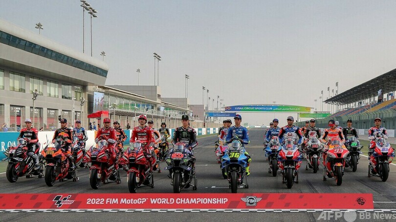 【3月4日 AFP】ロードレース世界選手権のMotoGPクラスに参戦する各チームのライダーは3日、今季開幕戦のカタールGPを控えて毎年恒例の写真撮影に臨み、ロシアのウクライナ侵攻に反対して「団結して平和を」と訴えるバナーを前にポーズを取った。