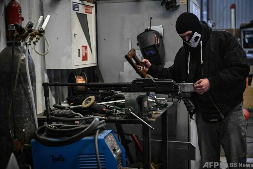 フェドチェンコさんの工場では、従業員全員が義勇軍に志願した。整備士の通称「クロス」さん(28)は、ウクライナ軍が奪ったロシア軍戦車から取り外した大口径機関銃を、訓練を受けていない志願兵でも使える市街戦用の携行武器に改造していた。