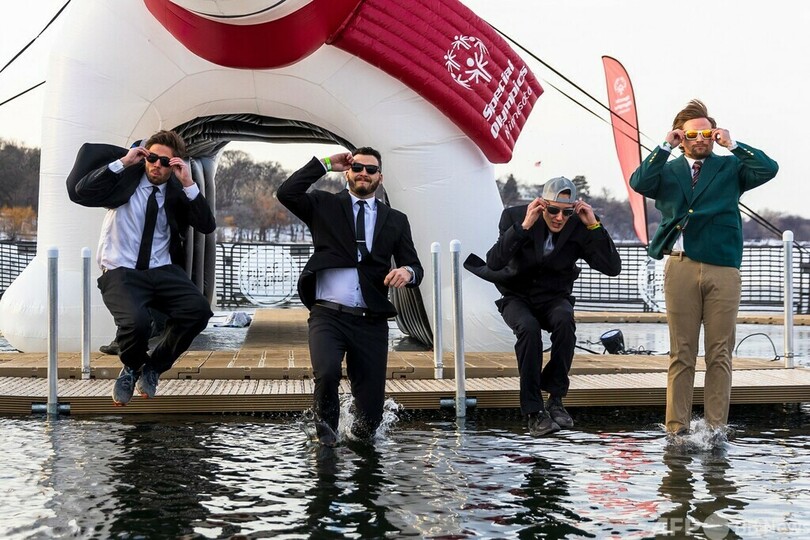 【3月12日 AFP】米ミネソタ州ミネアポリス(Minneapolis)にあるベデーマカスカ(Bde Maka Ska)湖で先ごろ、冷水に飛び込むイベント「ミネソタポーラープランジ(Minnesota Polar Plunge)」が行われた。参加者らは思い思いの格好で、水温4度の冷たい水に飛び込んだ。