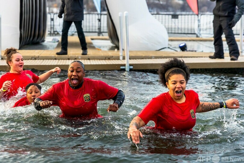 【3月12日 AFP】米ミネソタ州ミネアポリス(Minneapolis)にあるベデーマカスカ(Bde Maka Ska)湖で先ごろ、冷水に飛び込むイベント「ミネソタポーラープランジ(Minnesota Polar Plunge)」が行われた。参加者らは思い思いの格好で、水温4度の冷たい水に飛び込んだ。