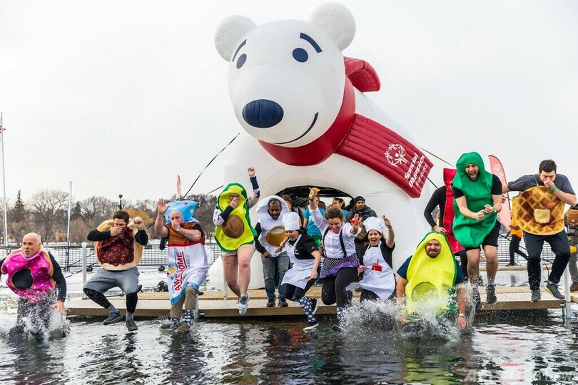 【3月12日 AFP】米ミネソタ州ミネアポリス(Minneapolis)にあるベデーマカスカ(Bde Maka Ska)湖で先ごろ、冷水に飛び込むイベント「ミネソタポーラープランジ(Minnesota Polar Plunge)」が行われた。参加者らは思い思いの格好で、水温4度の冷たい水に飛び込んだ。