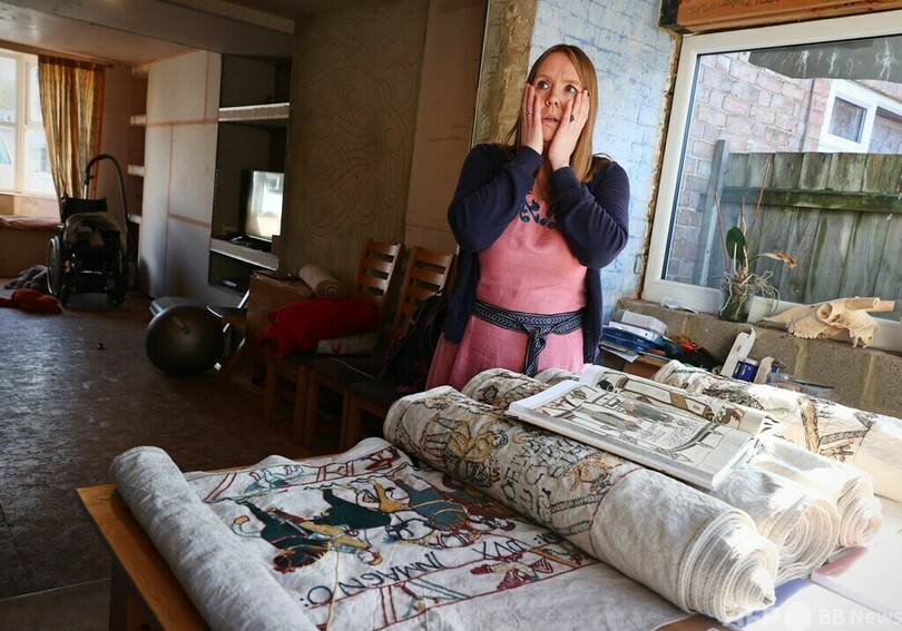 イングランド東部ケンブリッジシャー(Cambridgeshire)にある自宅のソファに座り、刺繍(ししゅう)のステッチを一つ一つ慎重に刺して、ノルマン人の王によるイングランド征服の物語を刺繍糸でつづっている。全長70メートルに及ぶ大作に取り掛かったのは2016年だ。