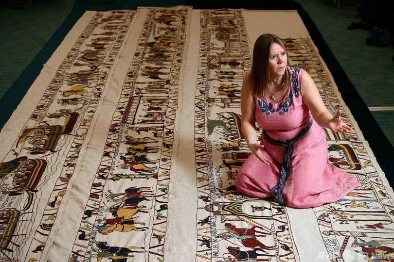 【3月20日 AFP】英国に移り住んで20年以上になるスウェーデン生まれのミア・ハンソン(Mia Hansson)さん(47)は、世界的に有名な織物「バイユーのタペストリー(Bayeux Tapestry)」の複製を実物大で制作している。