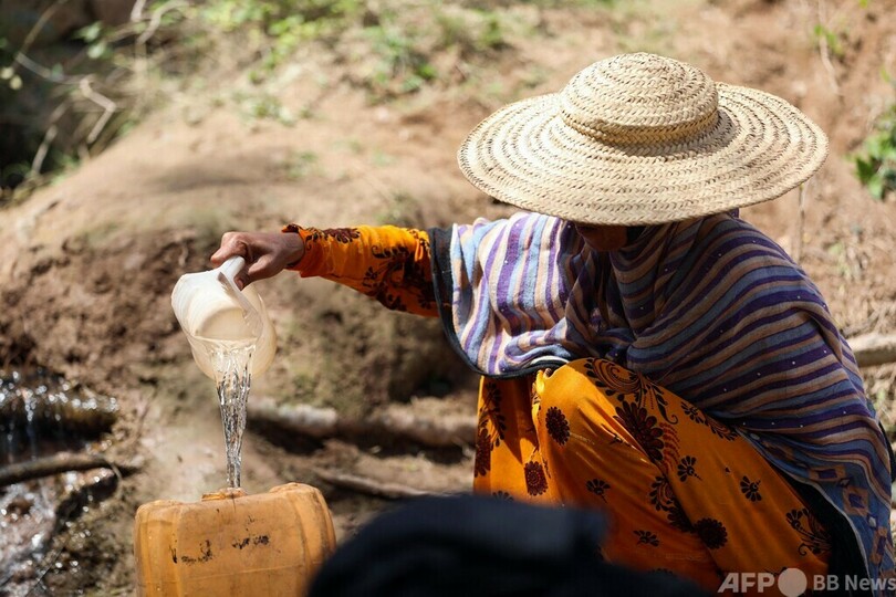 【3月14日 AFP】イエメン第3の都市タイズ(Taez)の郊外、バニシャイバー(Bani Shaybah)村の小川で水をくむ女性。この村の女性たちは、水くみと洗濯をするため、自宅から2キロ離れた小川まで毎日徒歩で往復している。(c)AFP