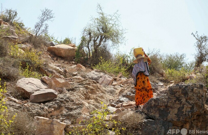 自宅から2キロ離れた小川で水くみ イエメン