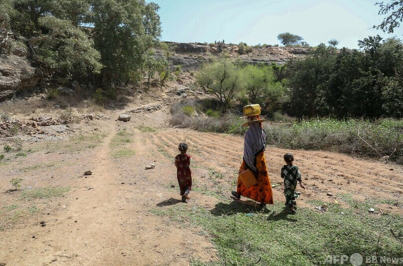 自宅から2キロ離れた小川で水くみ イエメン