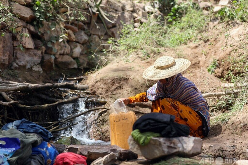 【3月14日 AFP】イエメン第3の都市タイズ(Taez)の郊外、バニシャイバー(Bani Shaybah)村の小川で水をくむ女性。この村の女性たちは、水くみと洗濯をするため、自宅から2キロ離れた小川まで毎日徒歩で往復している。(c)AFP