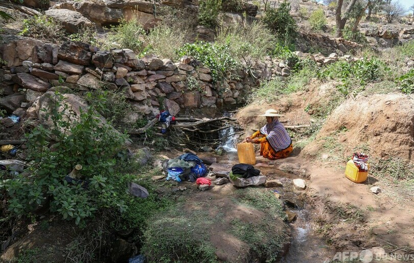 【3月14日 AFP】イエメン第3の都市タイズ(Taez)の郊外、バニシャイバー(Bani Shaybah)村の小川で水をくむ女性。この村の女性たちは、水くみと洗濯をするため、自宅から2キロ離れた小川まで毎日徒歩で往復している。(c)AFP