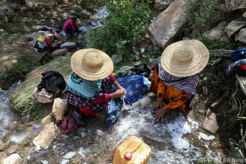【3月14日 AFP】イエメン第3の都市タイズ(Taez)の郊外、バニシャイバー(Bani Shaybah)村の小川で水をくむ女性。この村の女性たちは、水くみと洗濯をするため、自宅から2キロ離れた小川まで毎日徒歩で往復している。(c)AFP