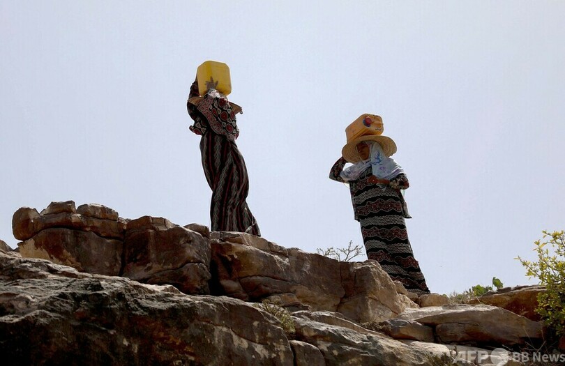 自宅から2キロ離れた小川で水くみ イエメン