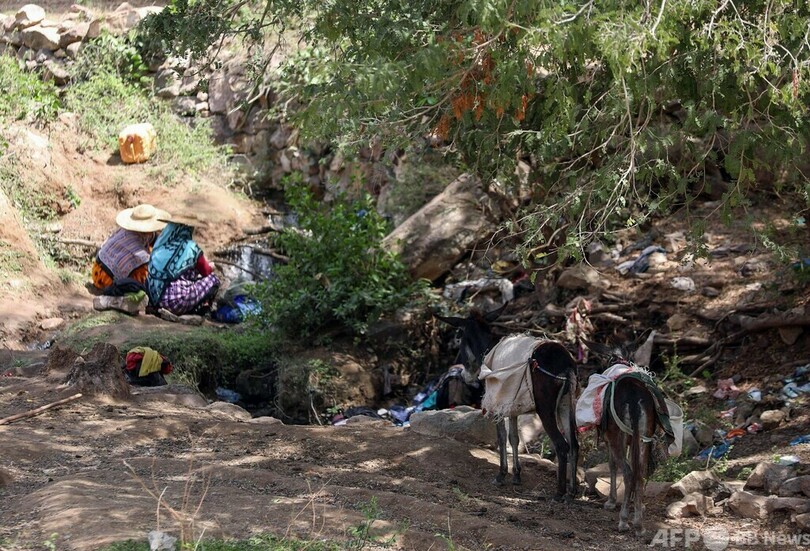 【3月14日 AFP】イエメン第3の都市タイズ(Taez)の郊外、バニシャイバー(Bani Shaybah)村の小川で水をくむ女性。この村の女性たちは、水くみと洗濯をするため、自宅から2キロ離れた小川まで毎日徒歩で往復している。(c)AFP