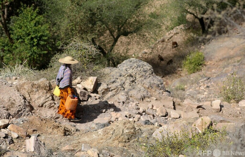 自宅から2キロ離れた小川で水くみ イエメン