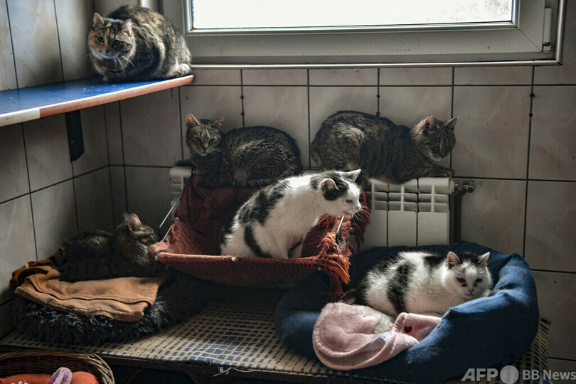 担当者は「多くの飼い主が犬や猫と一緒に避難しているが、ペット用品は持っていない。取る物も取りあえず自宅を出たからだ。だから、ここの仕事が終わったら、難民受け入れ施設にペットフードを持っていっている」と語った。(c)AFP/Jan FLEMR
