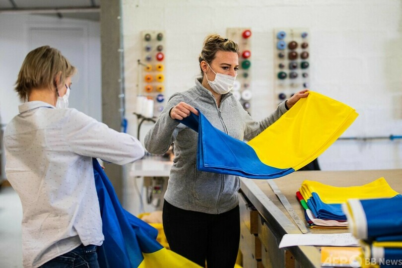 先月24日にロシアがウクライナへの侵攻を開始して以来、ウクライナ国旗の需要が高まっていると世界中の国旗メーカーが報告している。