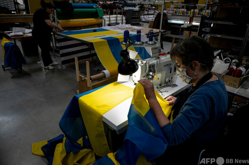 先月24日にロシアがウクライナへの侵攻を開始して以来、ウクライナ国旗の需要が高まっていると世界中の国旗メーカーが報告している。