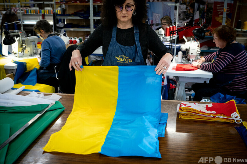 家族経営の工場のオーナー、エリック・ボルネ(Eric Borney)氏は「ウクライナ国旗は通常、年に4、5枚しか作っていない。だが、この10日間で1000枚作った」と語った。