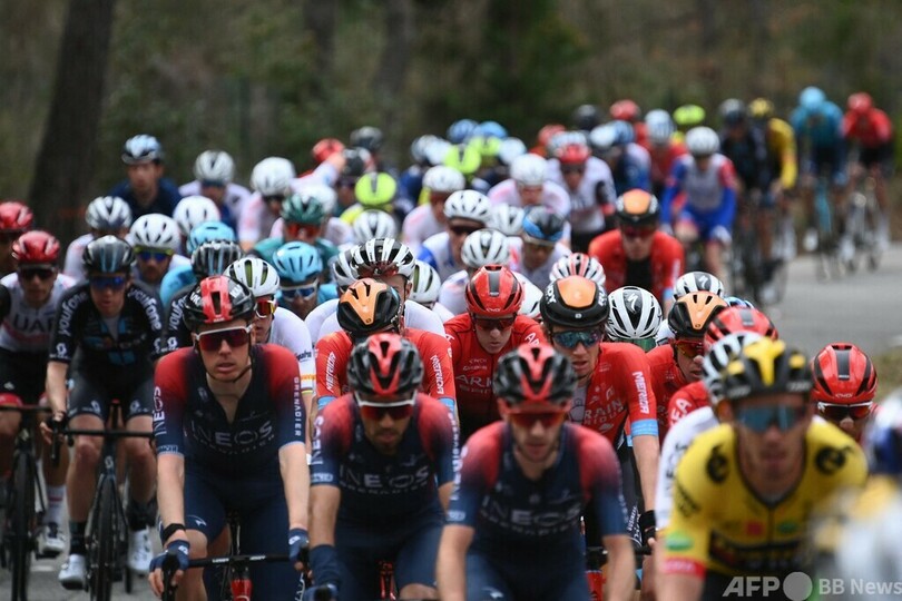 その他では、イネオス・グレナディアーズ(Ineos Grenadiers)のアダム・イェーツ(Adam Yates、英国)とダニエル・マルティネス(Daniel Martinez、コロンビア)、ボーラ・ハンスグローエ(Bora Hansgrohe)のクライマー、アレクサンドル・ブラソフ(Aleksandr Vlasov)、さらにアルケア・サムシック(Arkea-Samsic)のナイロ・キンタナ(Nairo Quintana、コロンビア)も総合優勝を狙える位置につけている。(c)AFP