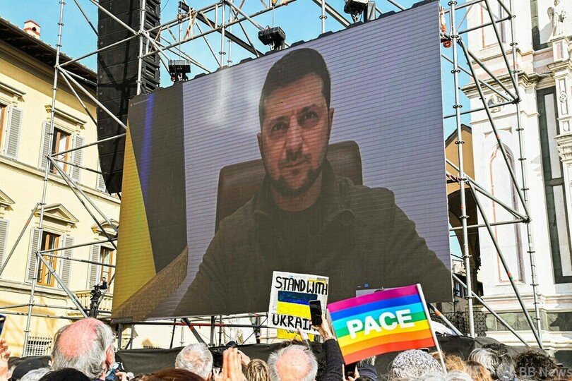 ウクライナ大統領がビデオ演説 伊フィレンツェで反戦集会