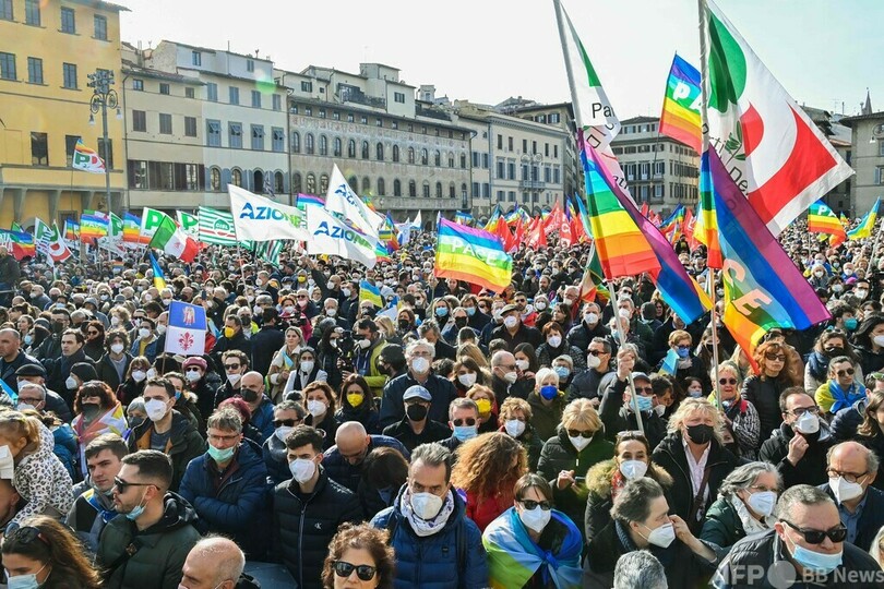 【3月13日 AFP】イタリア中部フィレンツェ(Florence)で12日、ロシアのウクライナ侵攻に抗議する集会が開かれ、ウクライナのウォロディミル・ゼレンスキー(Volodymyr Zelensky)大統領がビデオ演説をした。