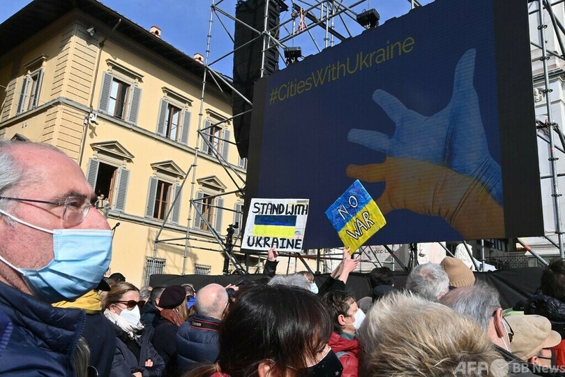 ウクライナ大統領がビデオ演説 伊フィレンツェで反戦集会
