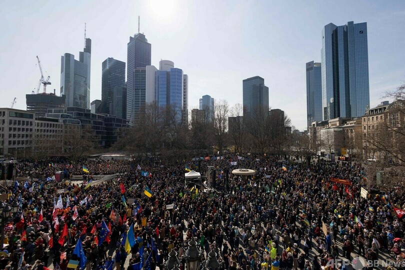 警察によると、中部フランクフルトでは、ウクライナへの連帯を示そうと約1万1000人が集まった。「平和的かつ問題なく」行われたという。