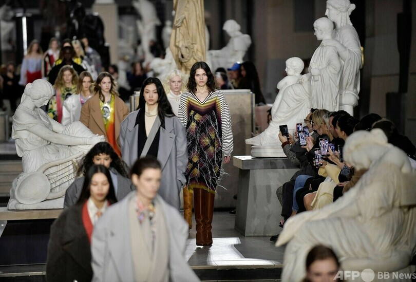【今日の1枚】観客は彫像、美術館でファッションショー