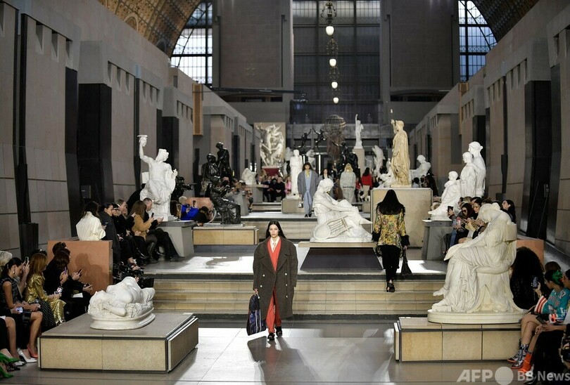 【今日の1枚】観客は彫像、美術館でファッションショー