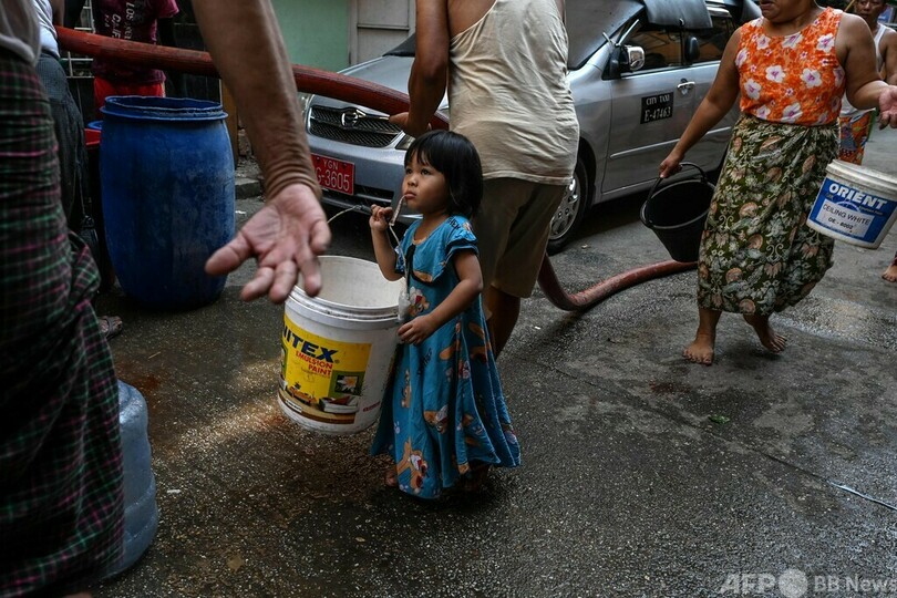 ヤンゴン北東部に住むコアウン(Ko Aung)さん(40)は、「調理なら炭を使えばいいが、水なしでは生きられない」と訴えた。近所に来ていた給水車には30人ほどが並んでいた。