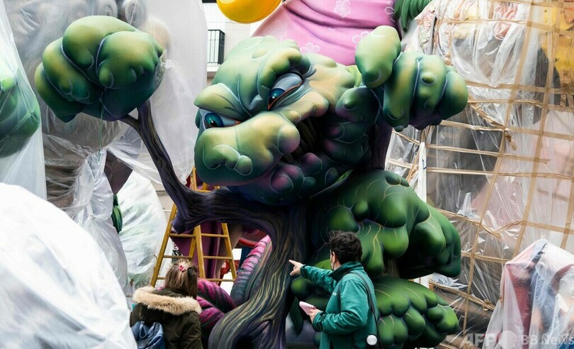 スペイン恒例の火祭り「ファリャス」 張り子の人形がずらり