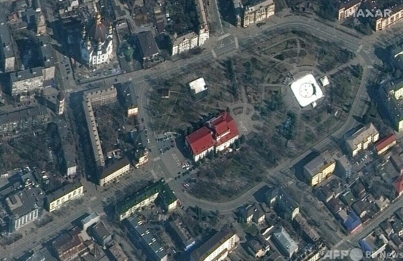 米宇宙技術会社マクサー・テクノロジーズ(Maxar Technologies)が提供した今月14日撮影の衛星画像からは、劇場の両側の地面にロシア語で「子ども」と書かれたメッセージが確認できる。市当局は現在、人的被害の確認を試みているが、周辺で続く砲撃に阻まれているという。