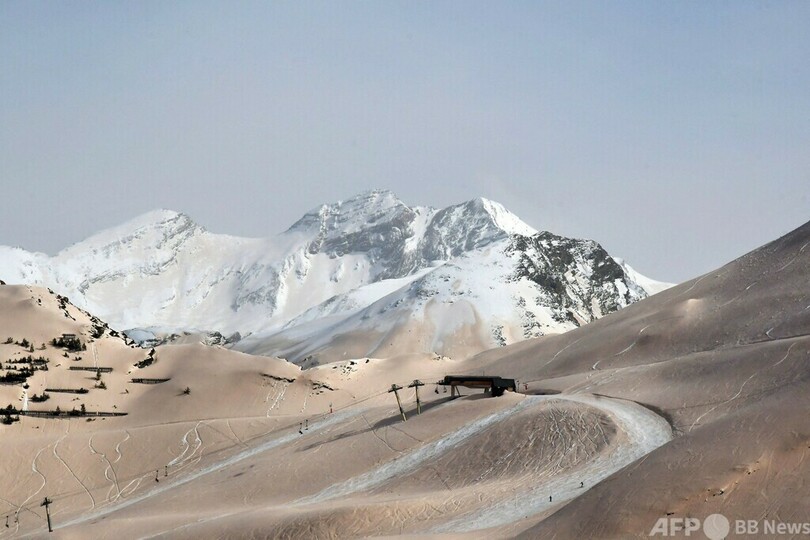 サハラ砂漠の砂塵、フランスのスキー場をオレンジ色に