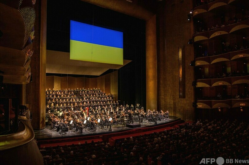 【3月21日 AFP】米ニューヨーク、リンカーン・センター(Lincoln Center)のメトロポリタン歌劇場(Metropolitan Opera)で開かれたウクライナ支援の慈善コンサート「A Concert For Ukraine」で、総立ちになった観客ら。チケットの売り上げはウクライナの救援活動に使われる。(c)AFP