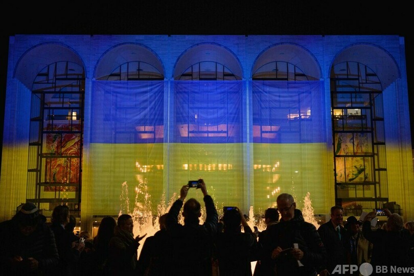 【3月21日 AFP】米ニューヨーク、リンカーン・センター(Lincoln Center)のメトロポリタン歌劇場(Metropolitan Opera)で開かれたウクライナ支援の慈善コンサート「A Concert For Ukraine」で、総立ちになった観客ら。チケットの売り上げはウクライナの救援活動に使われる。(c)AFP