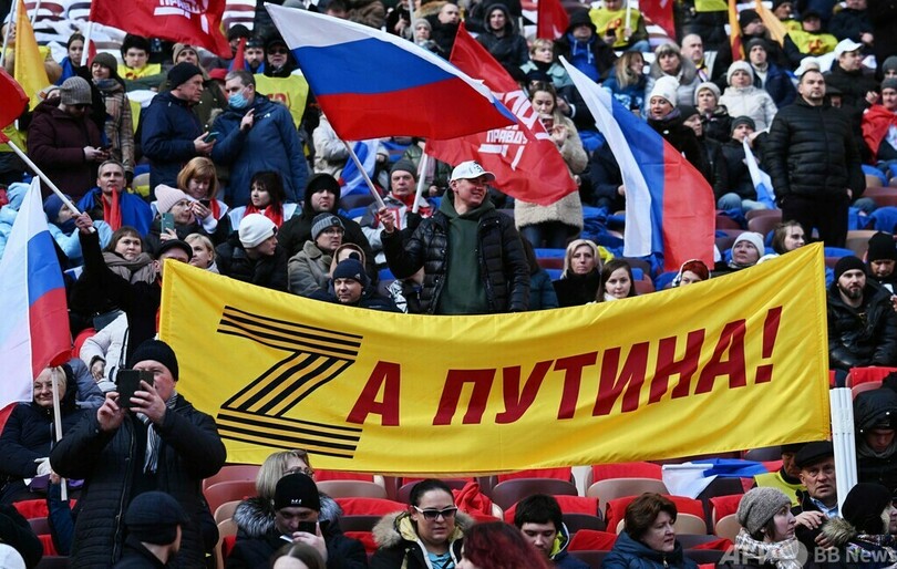 集会は、ロシア軍のウクライナ侵攻を支援し、2014年のクリミア(Crimea)半島併合から8年の節目を記念するために開かれた。放送では、プーチン氏が「作戦の開始が偶然にも、わが国の優秀な軍人の一人の誕生日と重なり……」と述べていたところで突然、映像が切り替わり、同じイベントで先に行われた愛国的音楽のコンサートの様子が流れ始めた。国営テレビは約10分後、演説を頭から最後まで放送した。