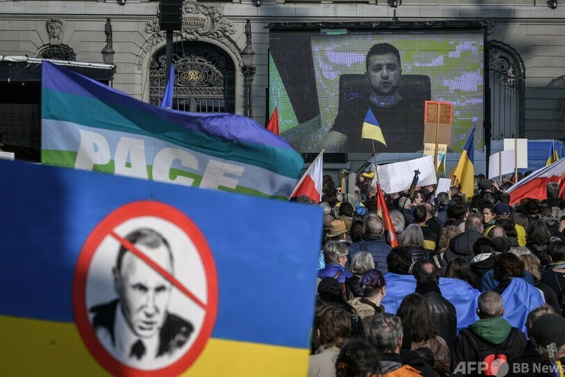 【3月20日 AFP】ウクライナのウォロディミル・ゼレンスキー(Volodymyr Zelensky)大統領は19日、スイスの首都ベルンの議会前で開かれたウクライナ支持集会に向けオンラインで演説し、ロシアの侵攻で「子どもたちが死んでいるにもかかわらず」、スイス食品大手ネスレ(Nestle)など同国企業がロシア事業を平常通り継続していると非難した。