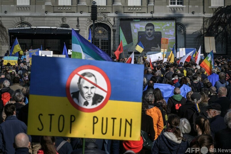 【3月20日 AFP】ウクライナのウォロディミル・ゼレンスキー(Volodymyr Zelensky)大統領は19日、スイスの首都ベルンの議会前で開かれたウクライナ支持集会に向けオンラインで演説し、ロシアの侵攻で「子どもたちが死んでいるにもかかわらず」、スイス食品大手ネスレ(Nestle)など同国企業がロシア事業を平常通り継続していると非難した。